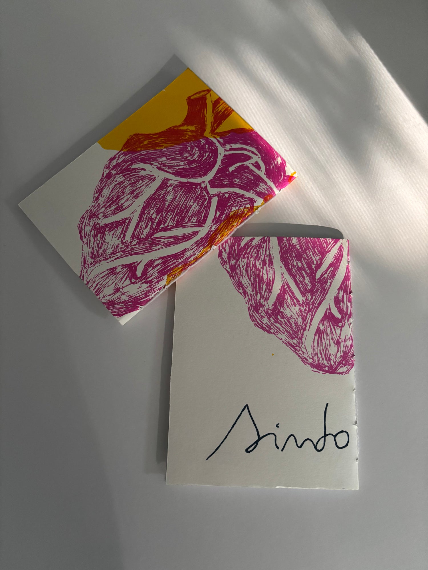 Serigrafia a duas cores, transmitindo a conexão entre dois corações diferentes que...